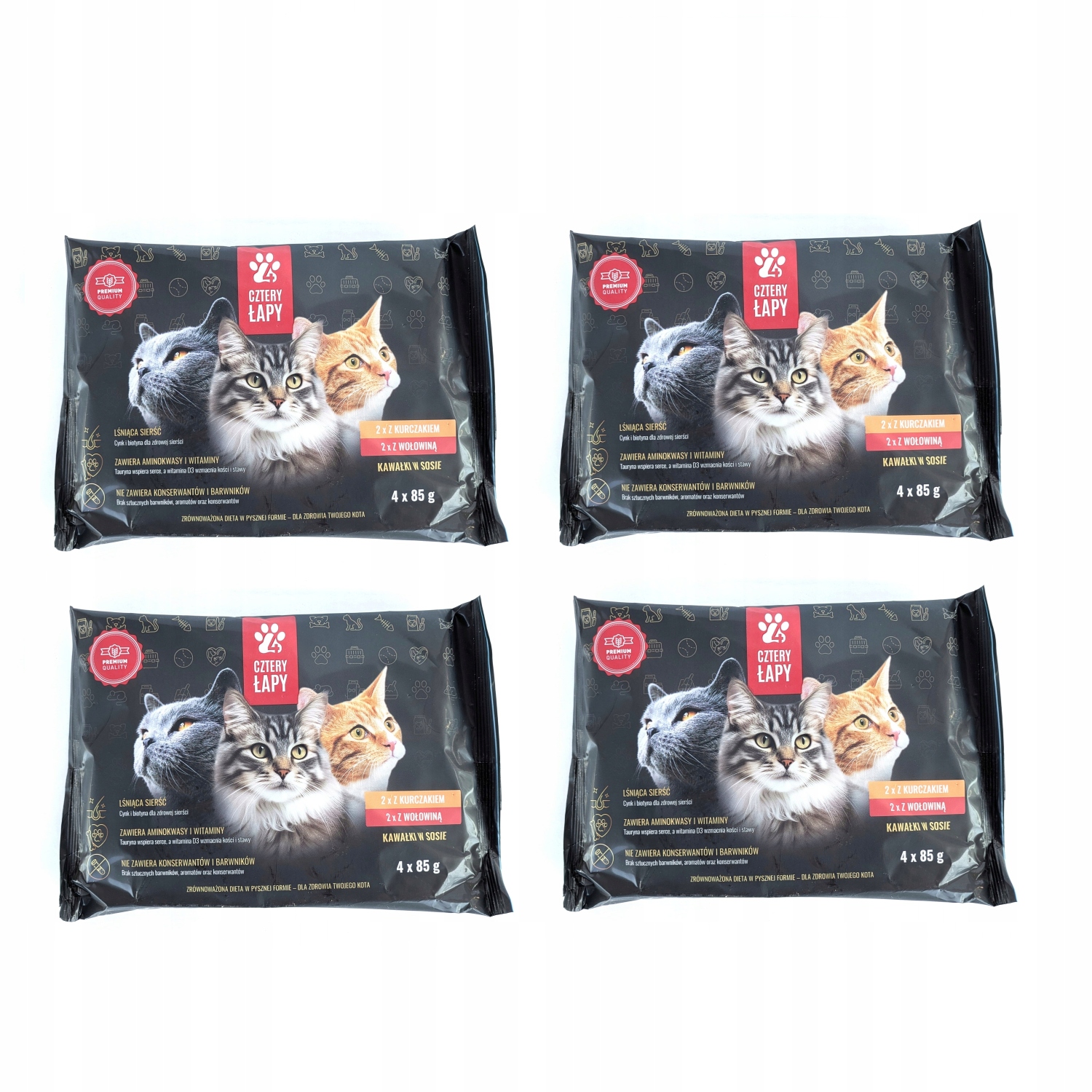 CZTERY ŁAPY SASZETKI DLA KOTÓW DOROSŁYCH 4x85g
